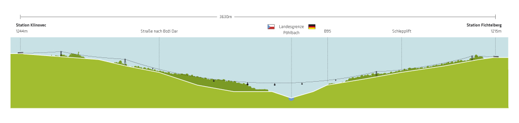 První studie na propojení lyžařských areálů Fichtelberg a Klínovec od ATC-Österreich a americké projekční firmy DESIGNWORKSHOP pochází z roku 1993. Vedla přes hranici obou států územím nazývaným Zechengrund. Tehdejší politické okolnosti však vyžadovaly přechod hranic s prokázáním totožnosti. Variantu vrchol-vrchol nabídky na lanovou dráhu vypracovala již v roce 2000 firma Ecosign.